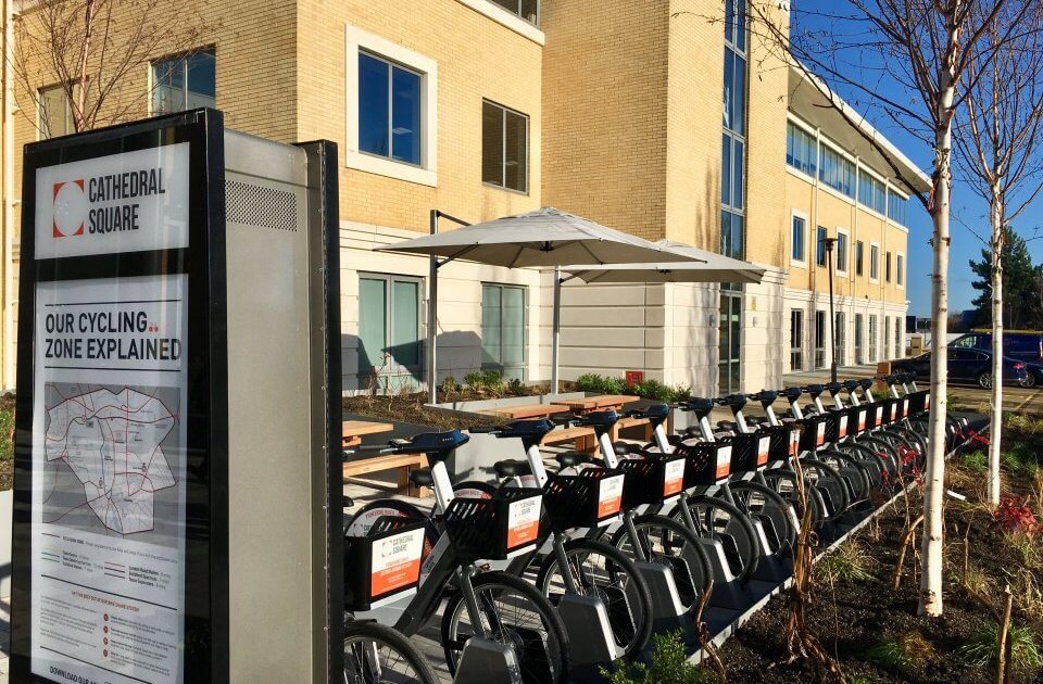 Bewegen is pleased to announce that it has launched a private bike share program in Guildford, United Kingdom. This new program includes 20 Pedelec (electric-assist) bicycles that will be placed in strategic locations across the Cathedral Square corporate campus.