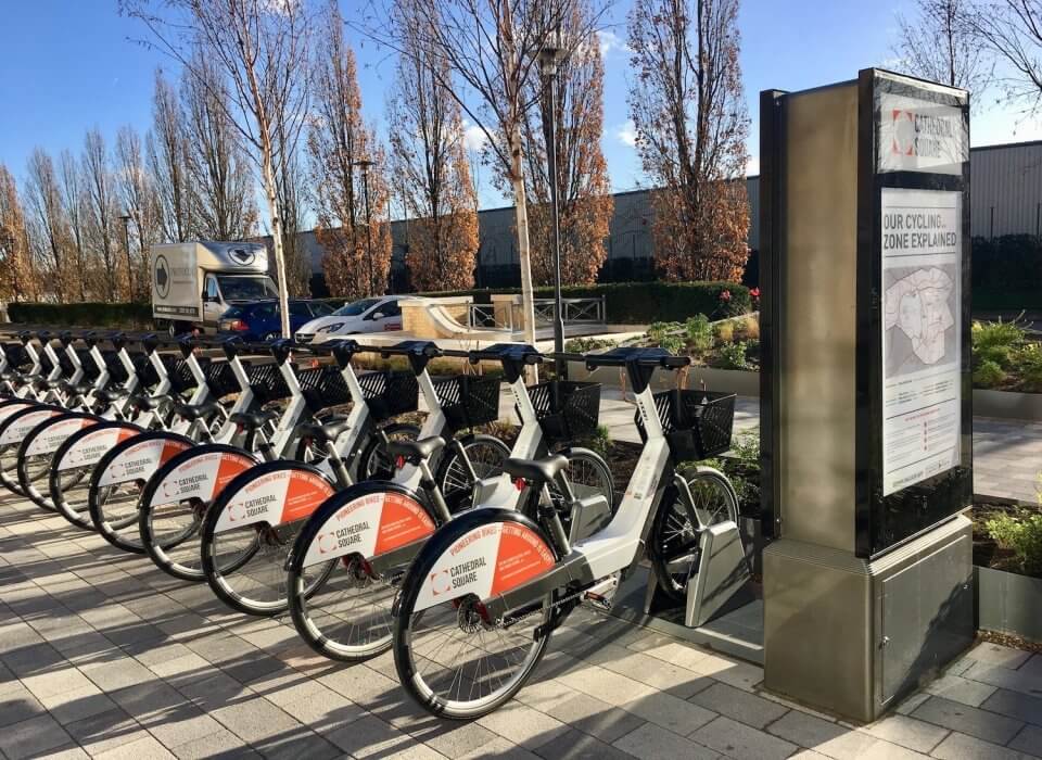 Bewegen is pleased to announce that it has launched a private bike share program in Guildford, United Kingdom. This new program includes 20 Pedelec (electric-assist) bicycles that will be placed in strategic locations across the Cathedral Square corporate campus.